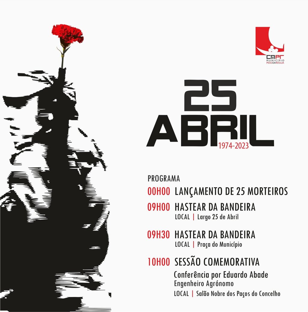 O Presidente da Assembleia Municipal e o Presidente da Câmara Municipal do Peso da Régua convidam a população em geral a participar nas comemorações oficiais dos 49 anos de Abril.