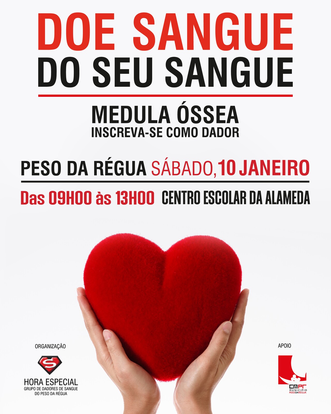 𝗔 𝗛𝗢𝗥𝗔 𝗘𝗦𝗣𝗘𝗖𝗜𝗔𝗟 – 𝗚𝗿𝘂𝗽𝗼 𝗱𝗲 𝗗𝗮𝗱𝗼𝗿𝗲𝘀 𝗱𝗲 𝗦𝗮𝗻𝗴𝘂𝗲 promove, com o apoio da Câmara Municipal do Peso da Régua, mais uma colheita de sangue e a inscrição para possível dador de medula óssea.