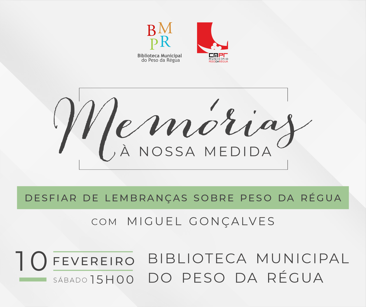 Junte-se a nós no próximo sábado, dia 𝟭𝟬 𝗱𝗲 𝗳𝗲𝘃𝗲𝗿𝗲𝗶𝗿𝗼, às 15h00, para mais uma edição de "𝙈𝙚𝙢𝙤́𝙧𝙞𝙖𝙨 𝙖̀ 𝙉𝙤𝙨𝙨𝙖 𝙈𝙚𝙙𝙞𝙙𝙖". Desta vez, temos a honra de receber 𝘔𝘪𝘨𝘶𝘦𝘭 𝘎𝘰𝘯𝘤̧𝘢𝘭𝘷𝘦𝘴, também conhecido por alguns como “Miguel da Sapataria”, que partilhará as suas experiências e memórias únicas sobre Peso da Régua.
