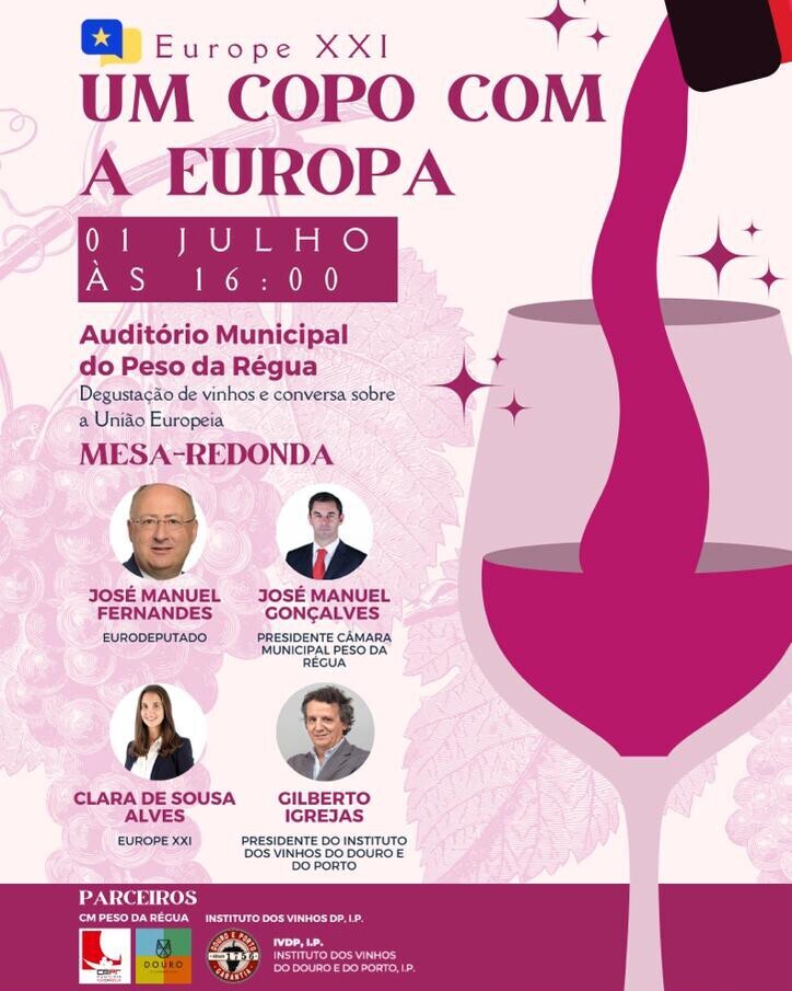 A Europe XXI promoverá no dia 1 de julho, pelas 16h00, no Auditório Municipal do Peso da Régua, a primeira edição do evento "Um Copo com a Europa".