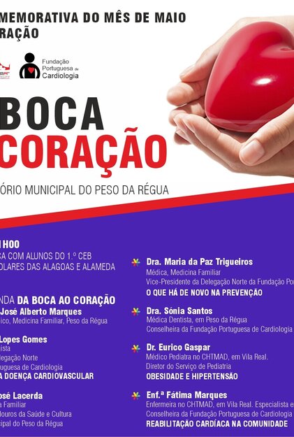 No âmbito das comemorações nacionais do MÊS DE MAIO, MÊS DO CORAÇÃO, a Câmara Municipal do Peso da Régua associa-se à Fundação ...AgendaAgenda | Agenda MensalAgenda mensal -