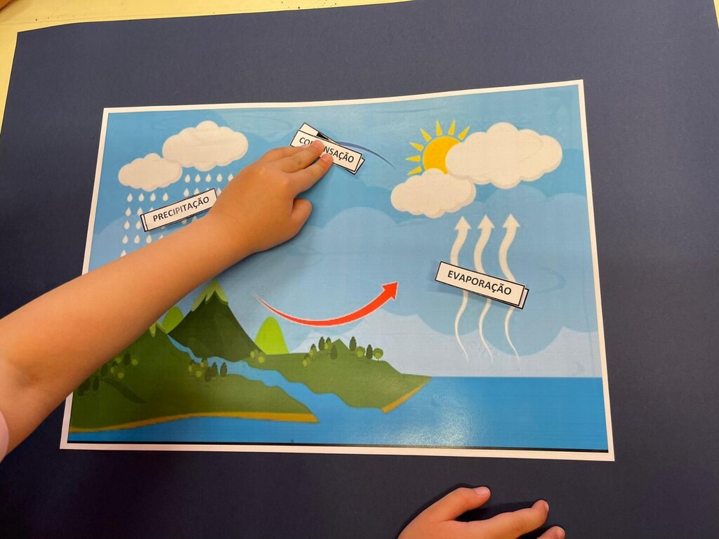 A atividade promovida incidiu sobre o ciclo da água, permitindo às crianças o conhecimento dos diferentes estados físicos da água, bem como a perceção de que a água é um bem essencial à vida e ao planeta. Os alunos tomaram consciência da importância para o seu uso consciente e sustentável, levando-os a refletir, criticamente, nas suas ações para com o meio ambiente.