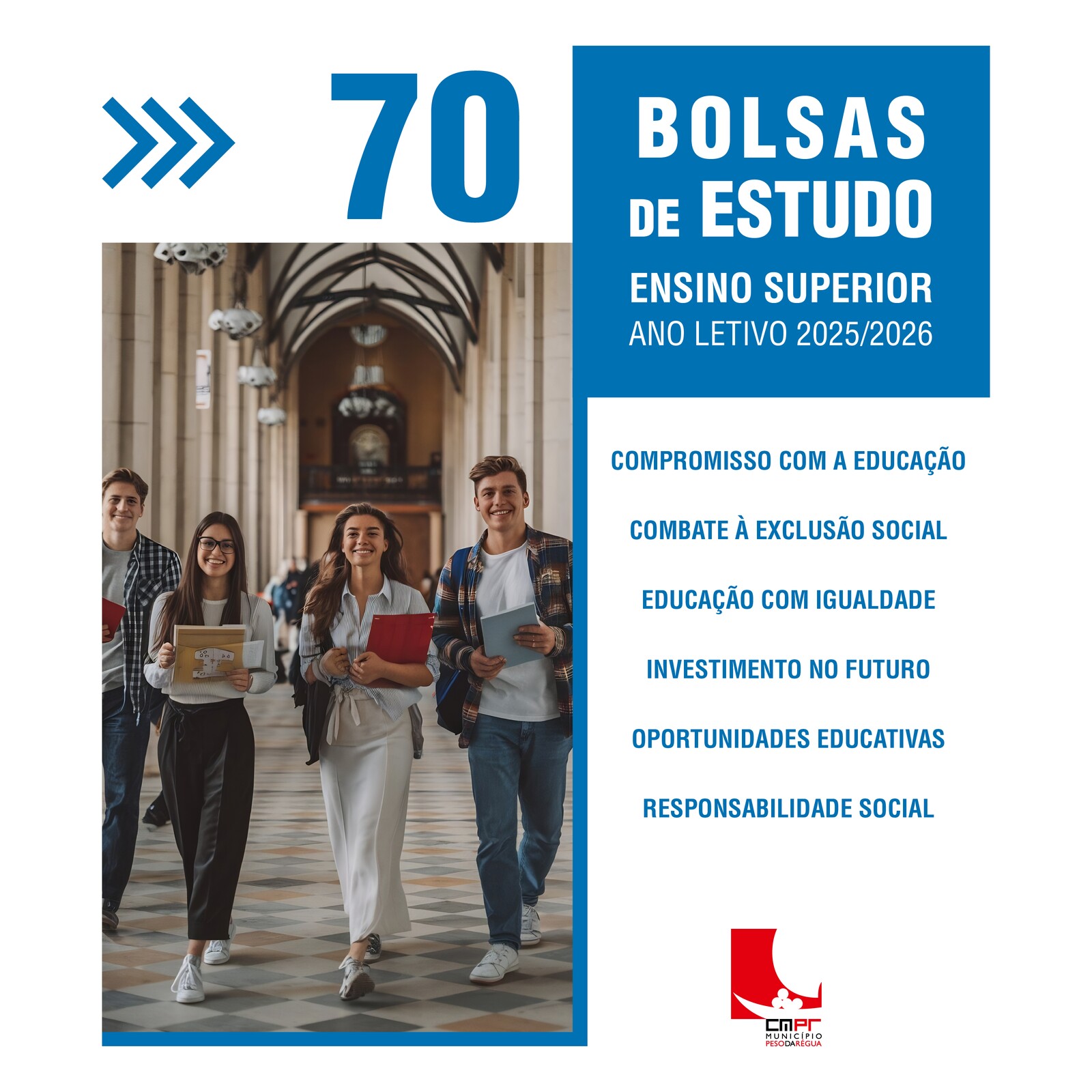 Neste ano letivo, foram atribuídas 𝟳𝟬 𝗯𝗼𝗹𝘀𝗮𝘀 𝗱𝗲 𝗲𝘀𝘁𝘂𝗱𝗼 a estudantes do ensino superior, reforçando o compromisso da autarquia com a igualdade de oportunidades e o apoio às famílias reguenses.