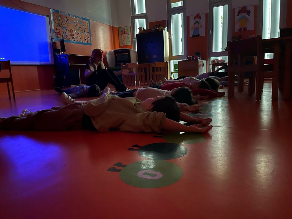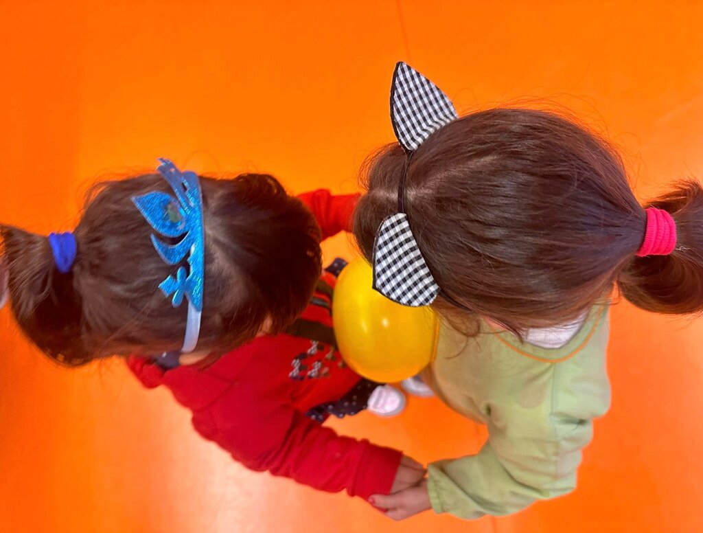 De seguida, através de um jogo, com recurso a um balão, as meninas e meninos, organizados em duplas, puderam exercitar o corpo e a mente, realizando gestos associados ao que ouviam, sem deixarem cair o balão.