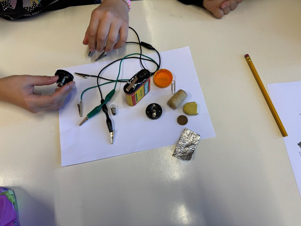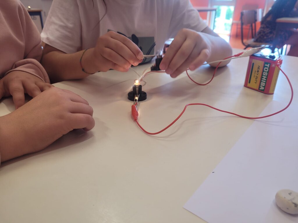 Por fim, os alunos do 3.º e 4.º ano realizaram atividades práticas relacionadas com os circuitos elétricos. Aprenderam a construir circuitos simples e a distinguir objetos bons e maus condutores de corrente elétrica. Esta experiência foi crucial para os ajudar a entender os princípios básicos da eletricidade e a importância da segurança elétrica.