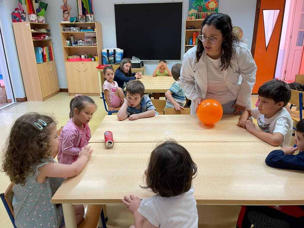 A atividade experimental relativa à “eletricidade estática”, permitiu que as crianças realizassem três experiências que os deixaram com os cabelos em pé! Aprenderam, de forma simples, que os grandes vilões desta experiência são os eletrões. Pequenas partículas invisíveis e leves que passeiam, de matéria em matéria, dando origem à eletricidade estática.