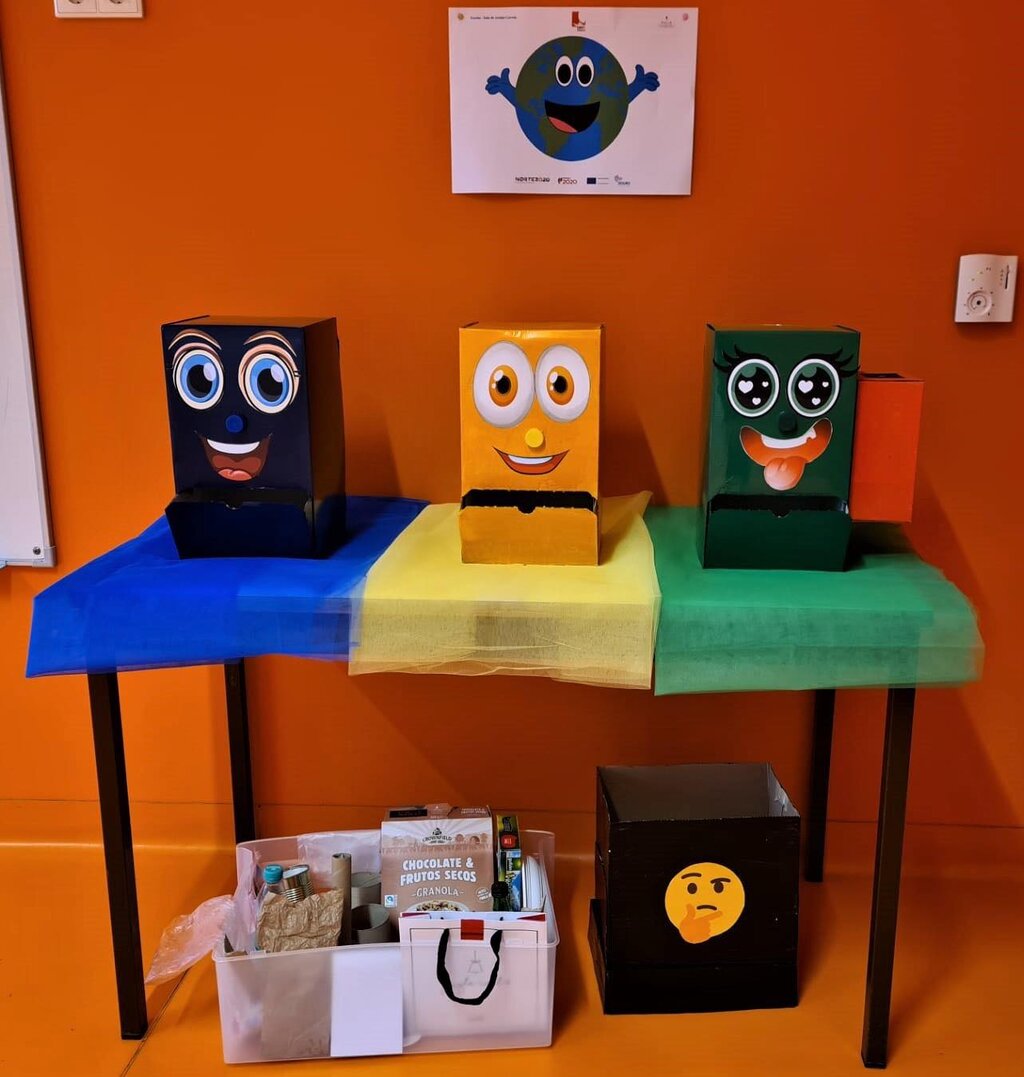 No âmbito da sua ação/medida 1 – O Meu Primeiro Laboratório, os alunos participaram numa atividade dinâmica, divertida e interativa onde aprenderam as cores dos Ecopontos, bem como a separar corretamente os diferentes materiais/resíduos.