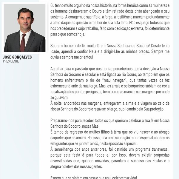 MENSAGEM DO PRESIDENTE C. M. PESO DA RÉGUA