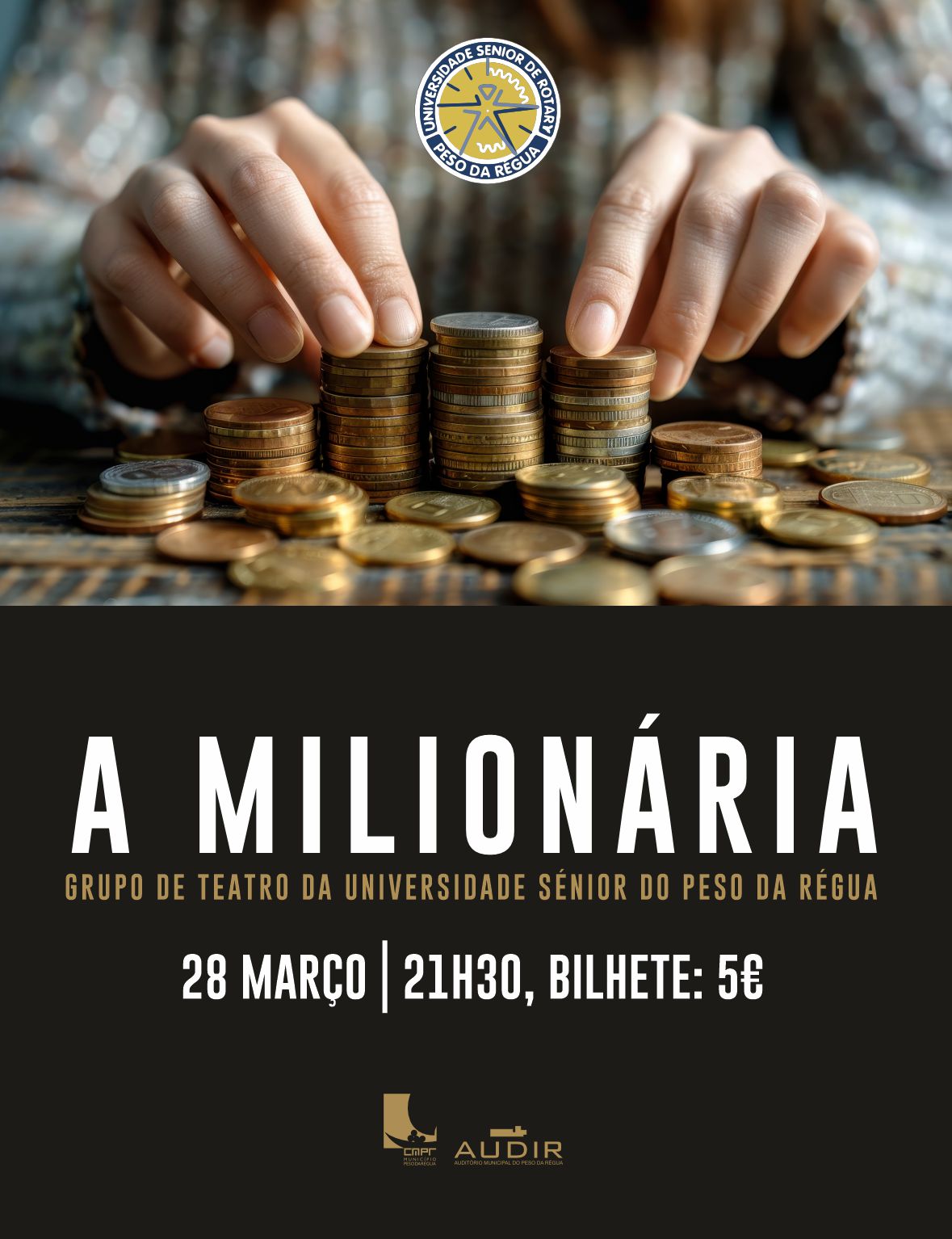 O Grupo de Teatro da Universidade Sénior do Peso da Régua regressa ao palco do AUDIR com a reposição da peça A MILIONÁRIA.